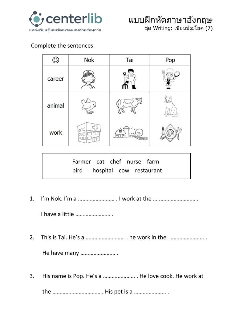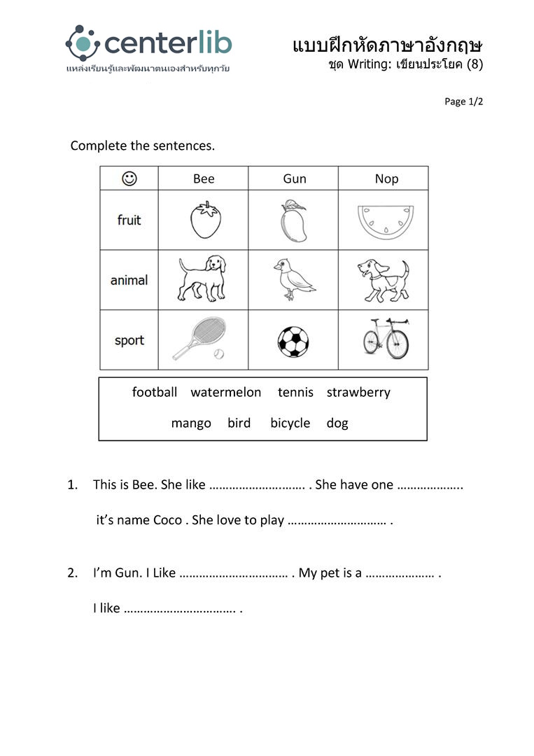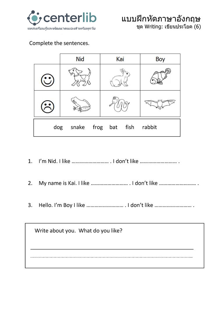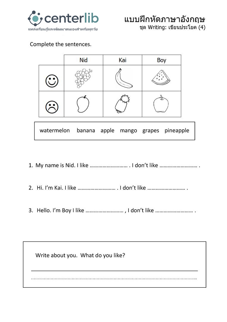 เขียนประโยค เล่าเรื่องตัวเองและครอบครัว