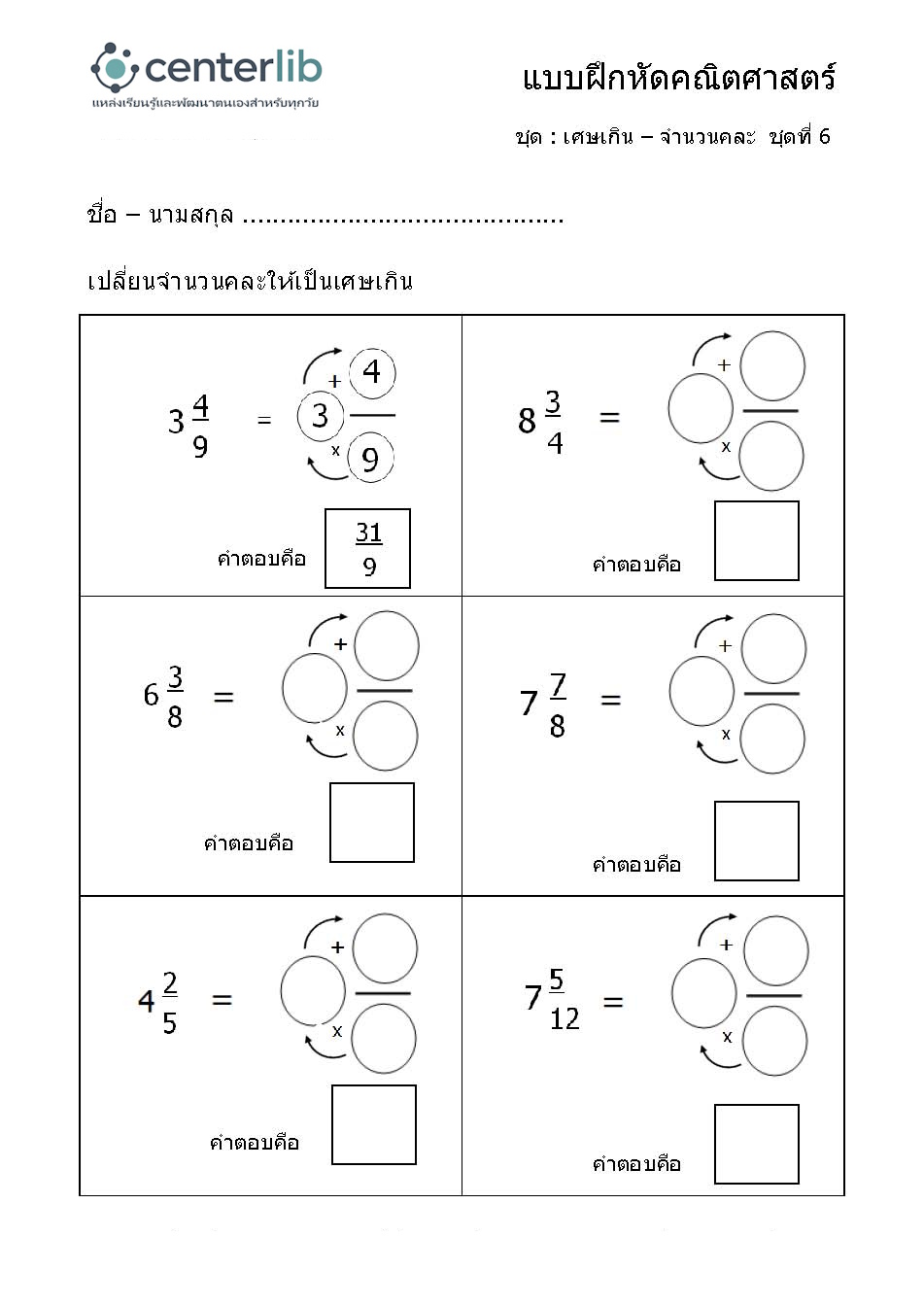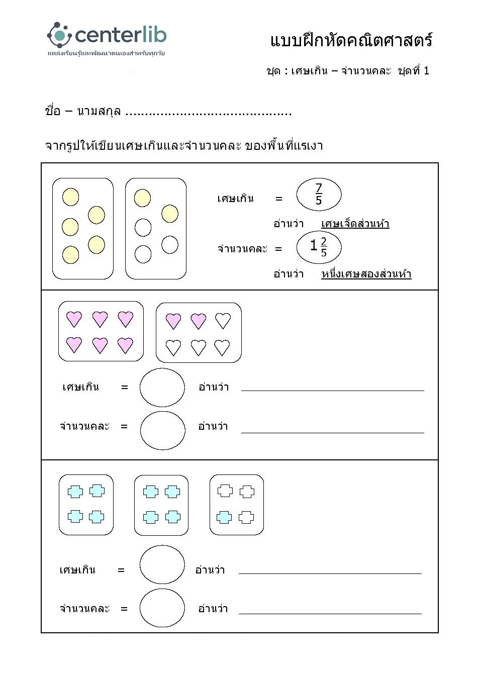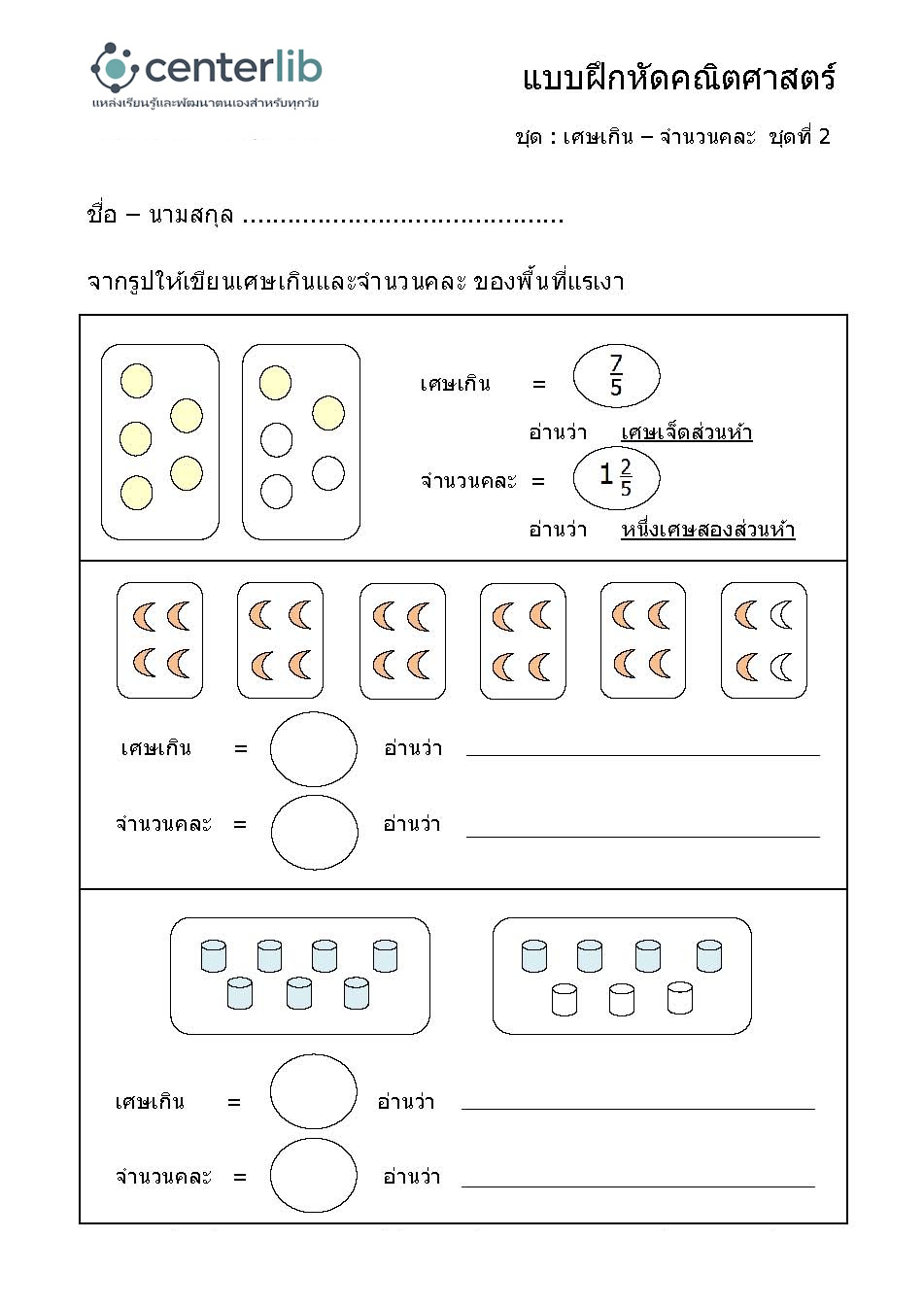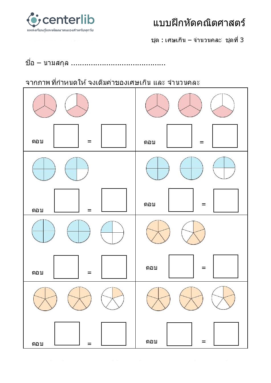 ป.3 เศษส่วน เศษเกิน จำนวนคละ