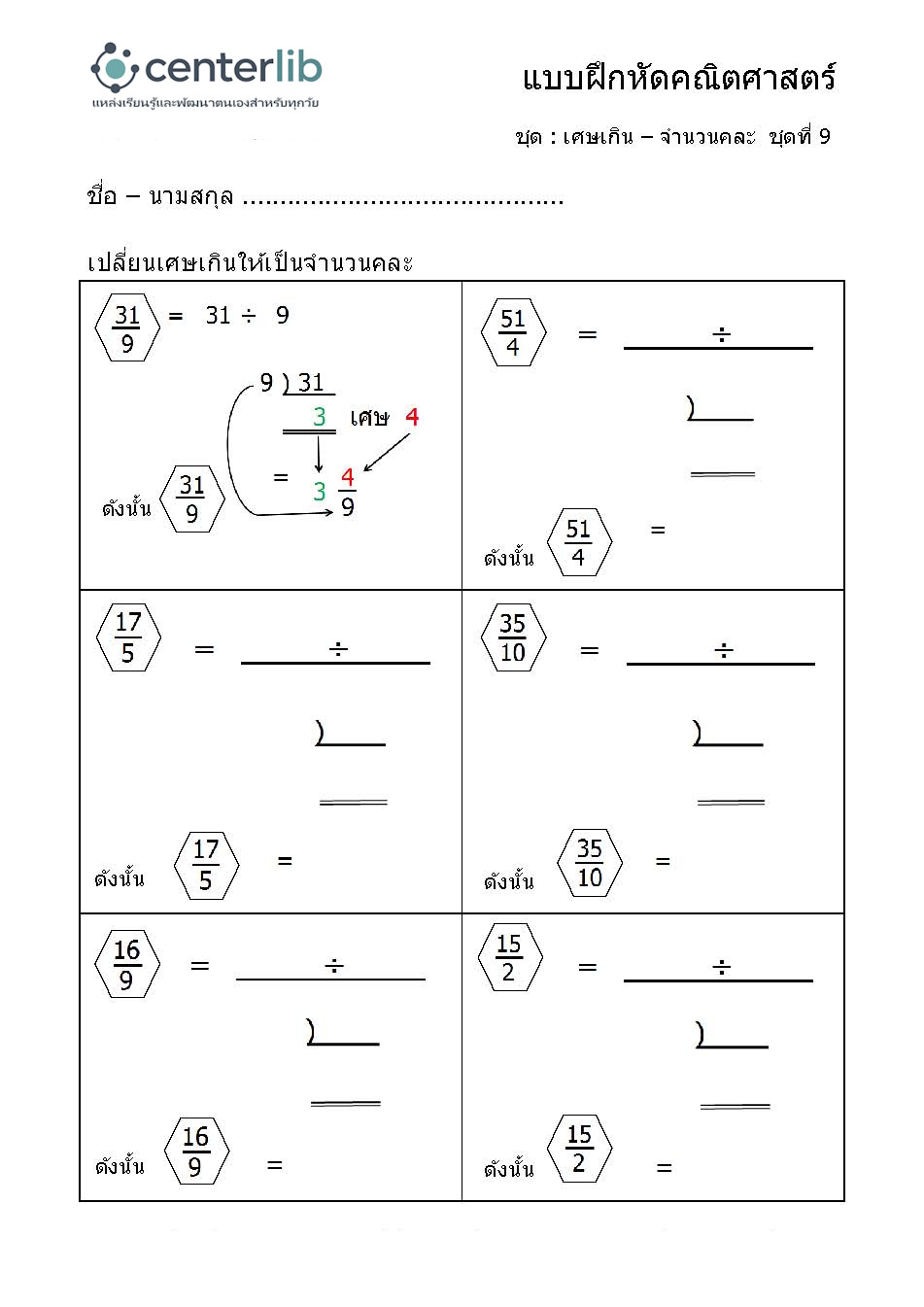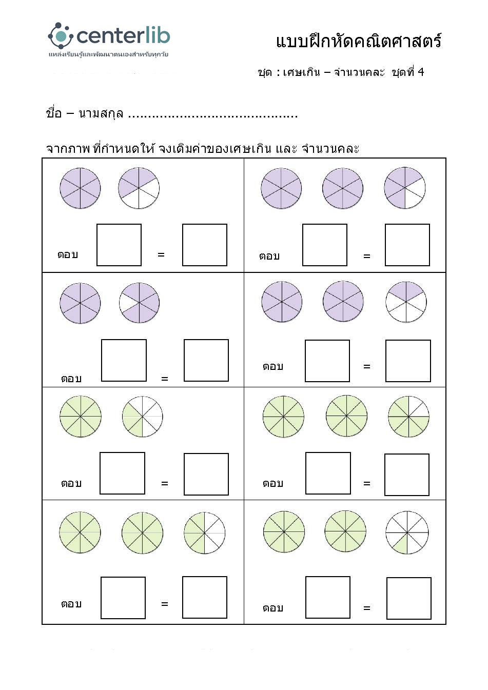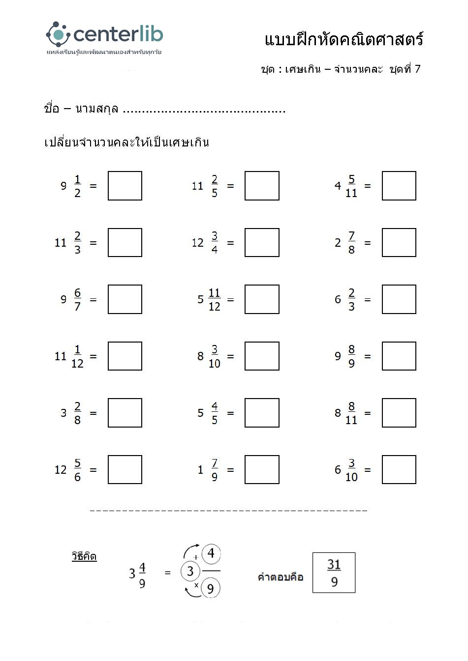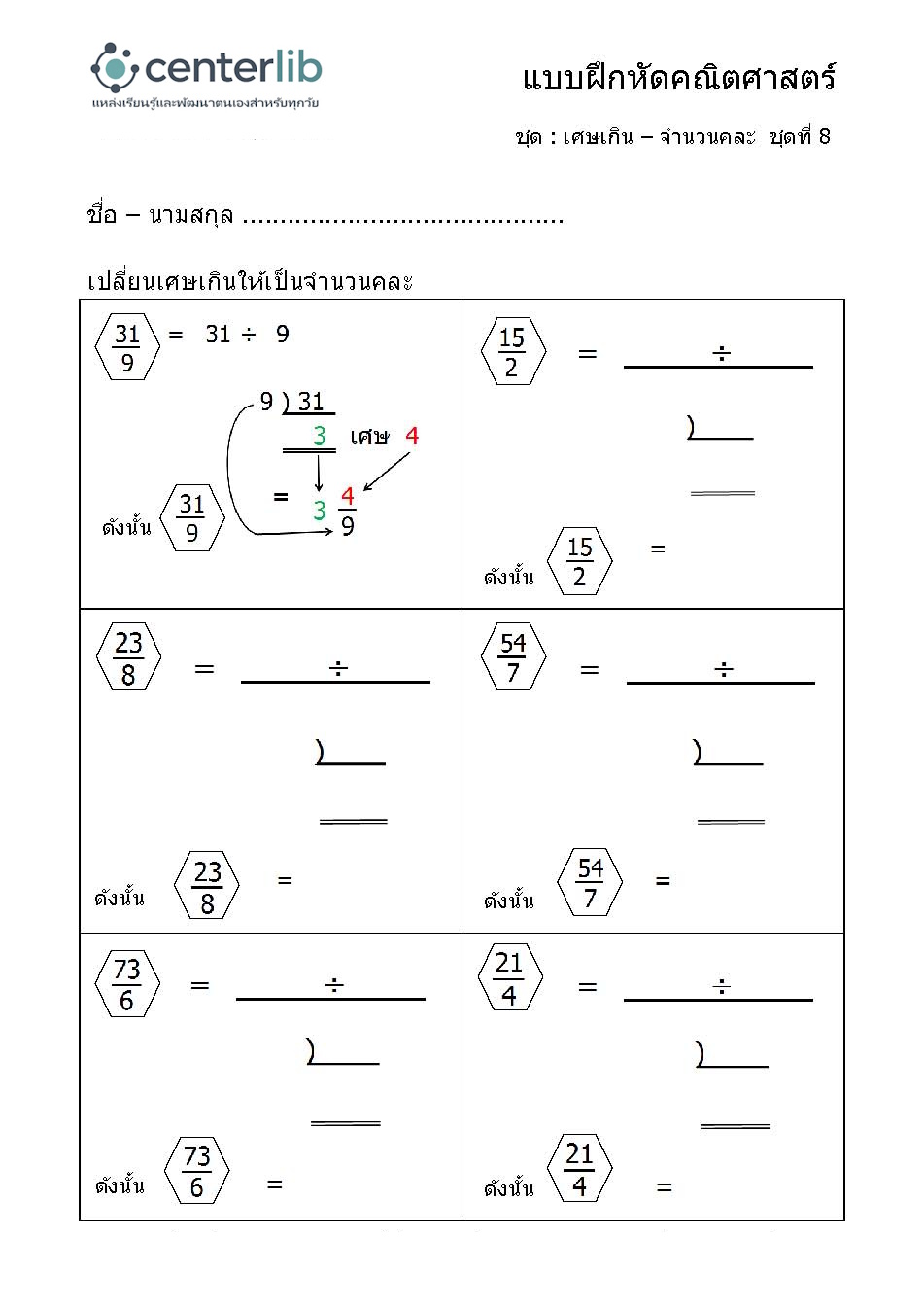 ป.3 เศษส่วน เศษเกิน จำนวนคละ