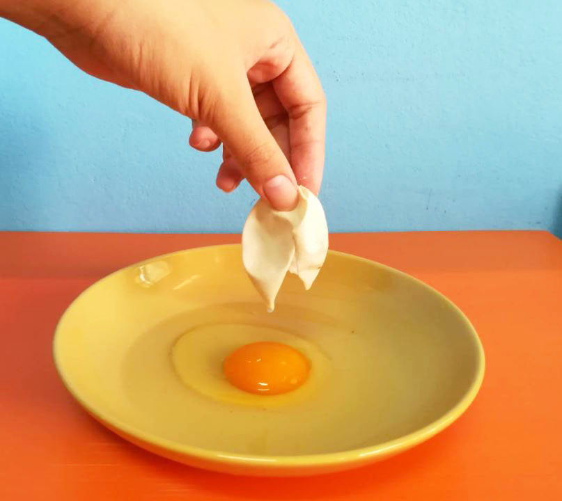 เมื่อเปลือกไข่ทำปฏิกิริยากับน้ำส้มสายชูจนหมด จนเหลือไว้เพียงเยื่อหุ้มไข่ ซึ่งหุ้มของเหลวภายในไข่ไก่ก็จะกลายเป็นก้อนนุ่มนิ่มเด้งดึ๋งไปในที่สุด เด็กๆคงอยากจับไข่นิ่มดึ๋งดั๋งแล้วใช่ไหมล่ะ อดใจรอถึงพรุ่งนี้เช้าก่อนนะ