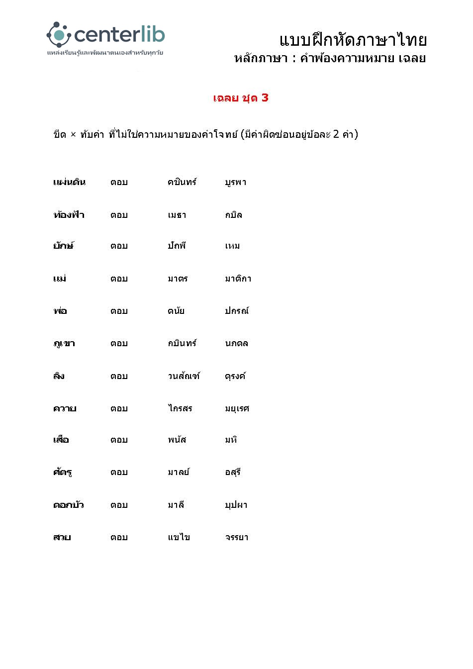 คำพ้องรูป พ้องเสียง พ้องความหมาย (คำไวพจน์)