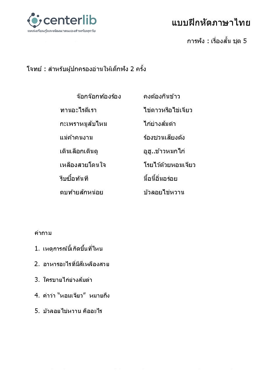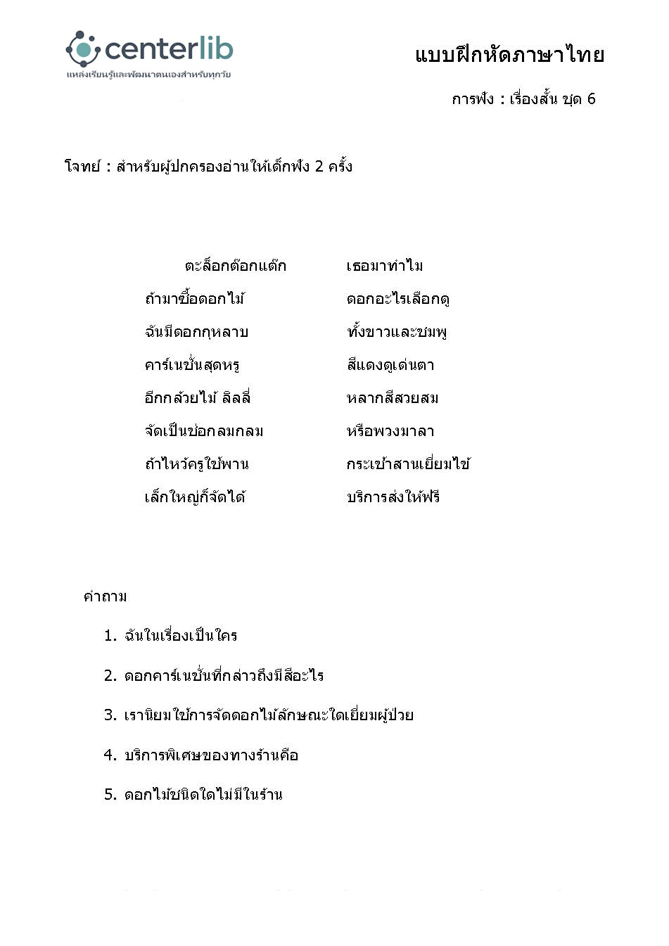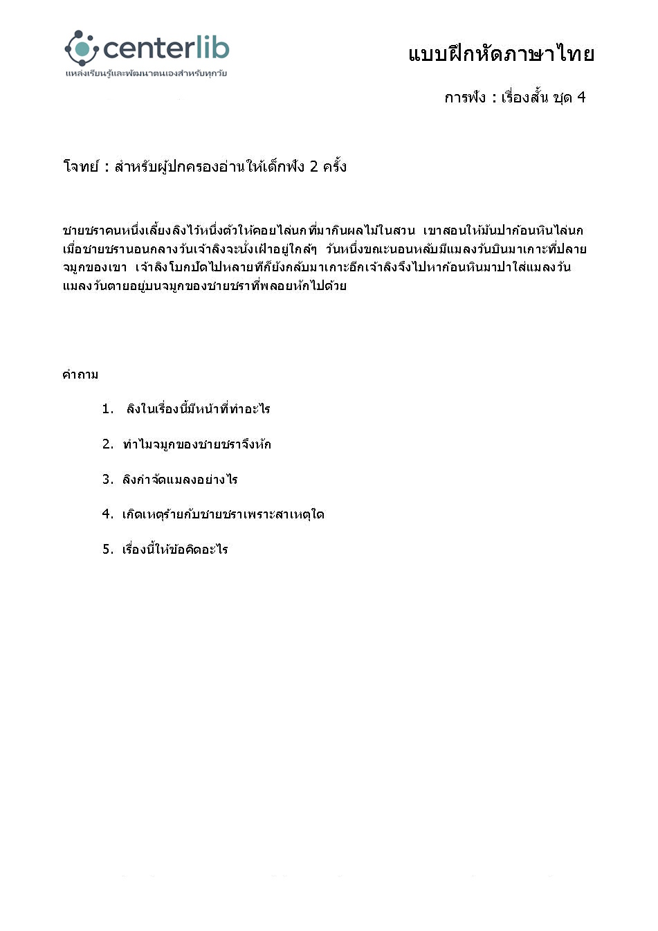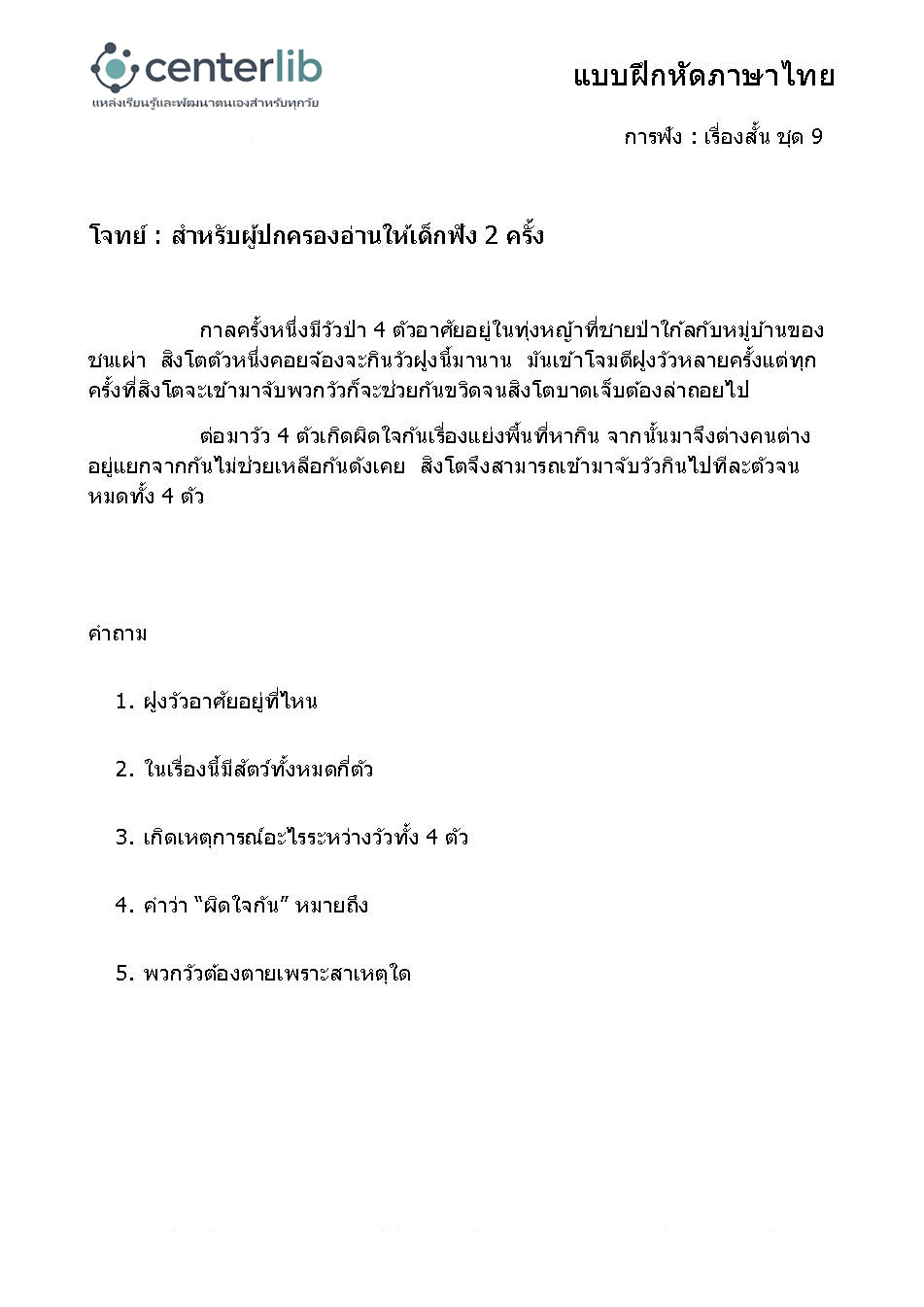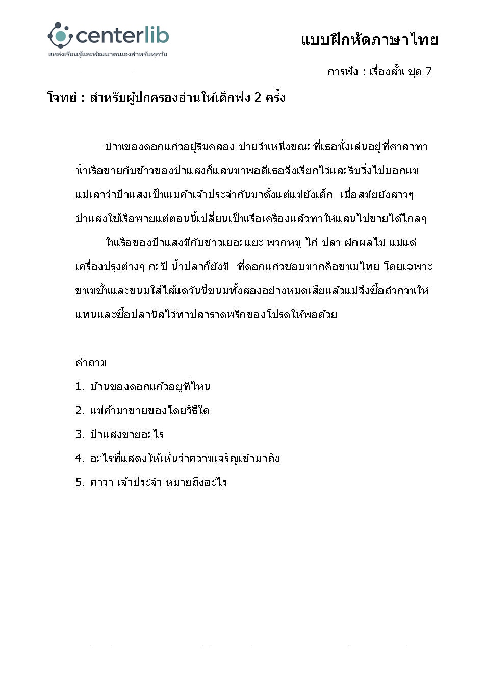 การฟังเรื่องสั้น แล้วตอบคำถาม