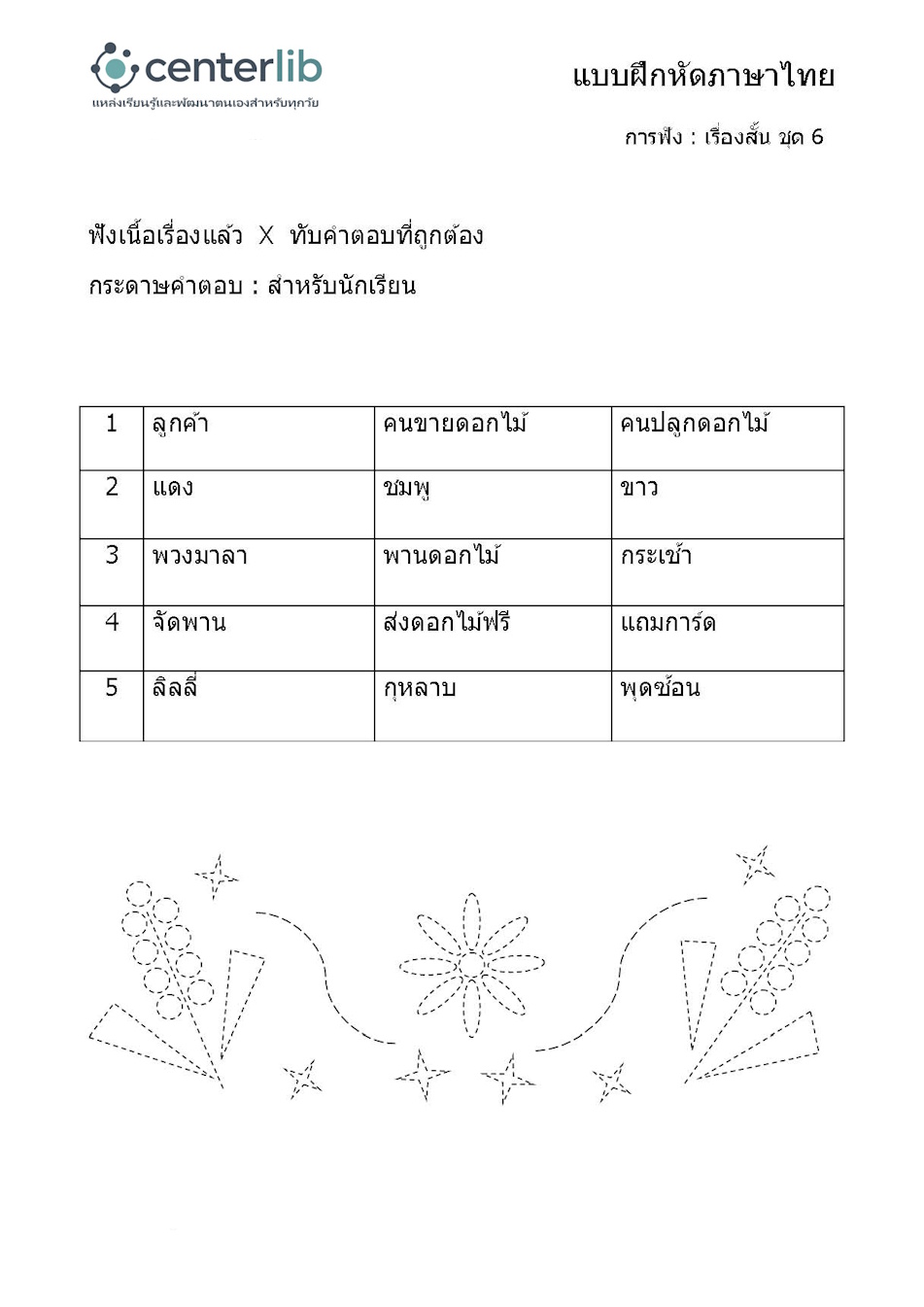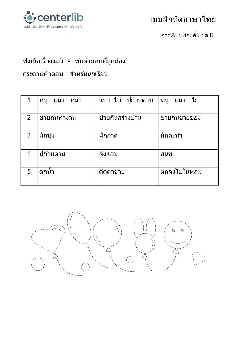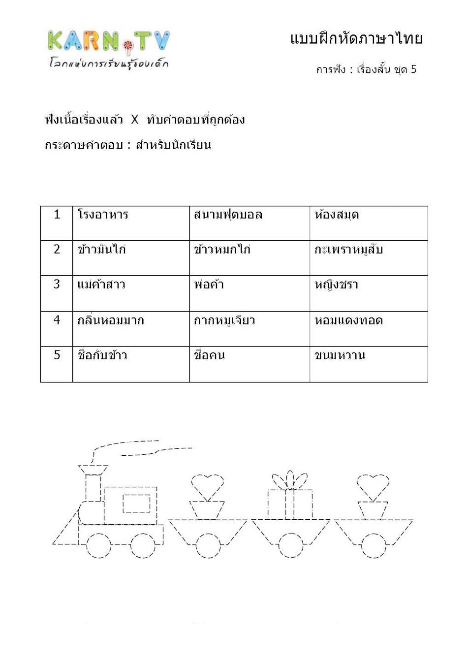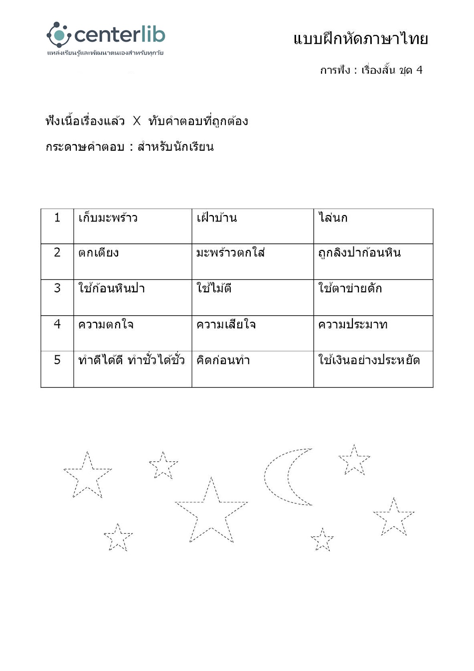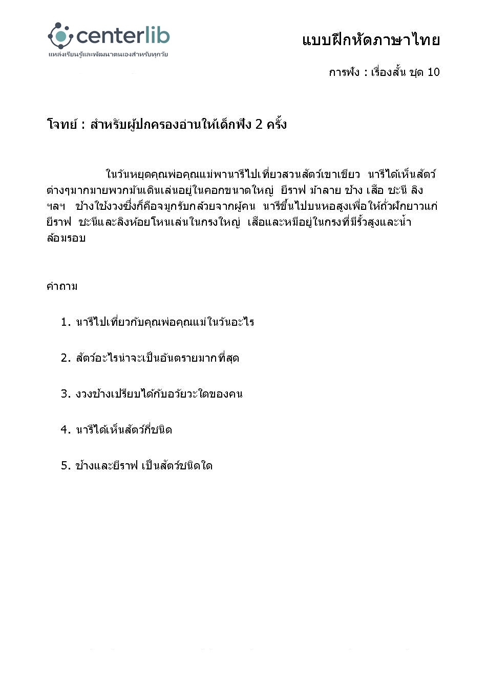 การฟังเรื่องสั้น แล้วตอบคำถาม