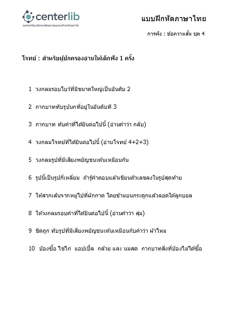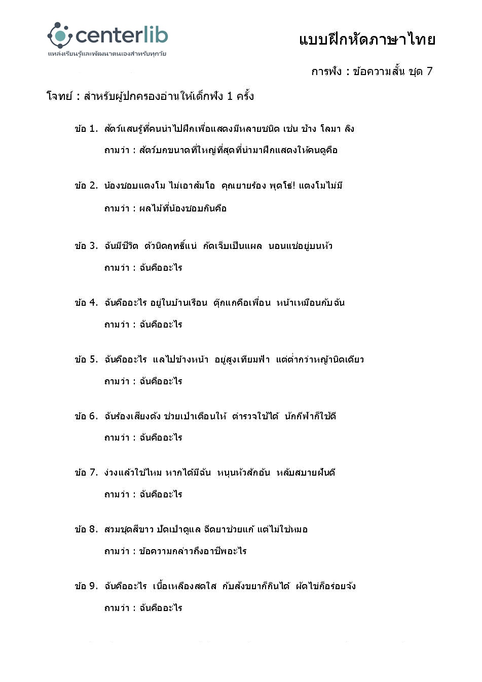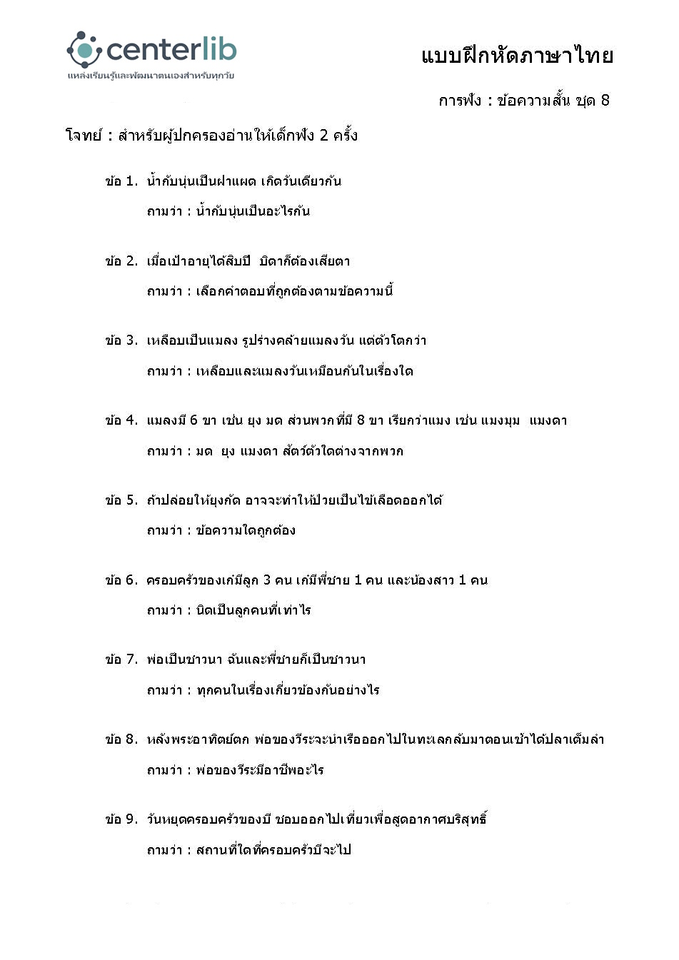 การฟังข้อความสั้น แล้วตอบคำถาม