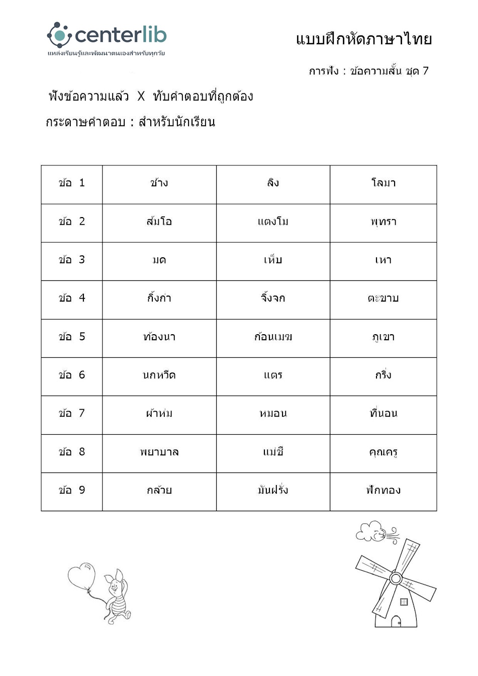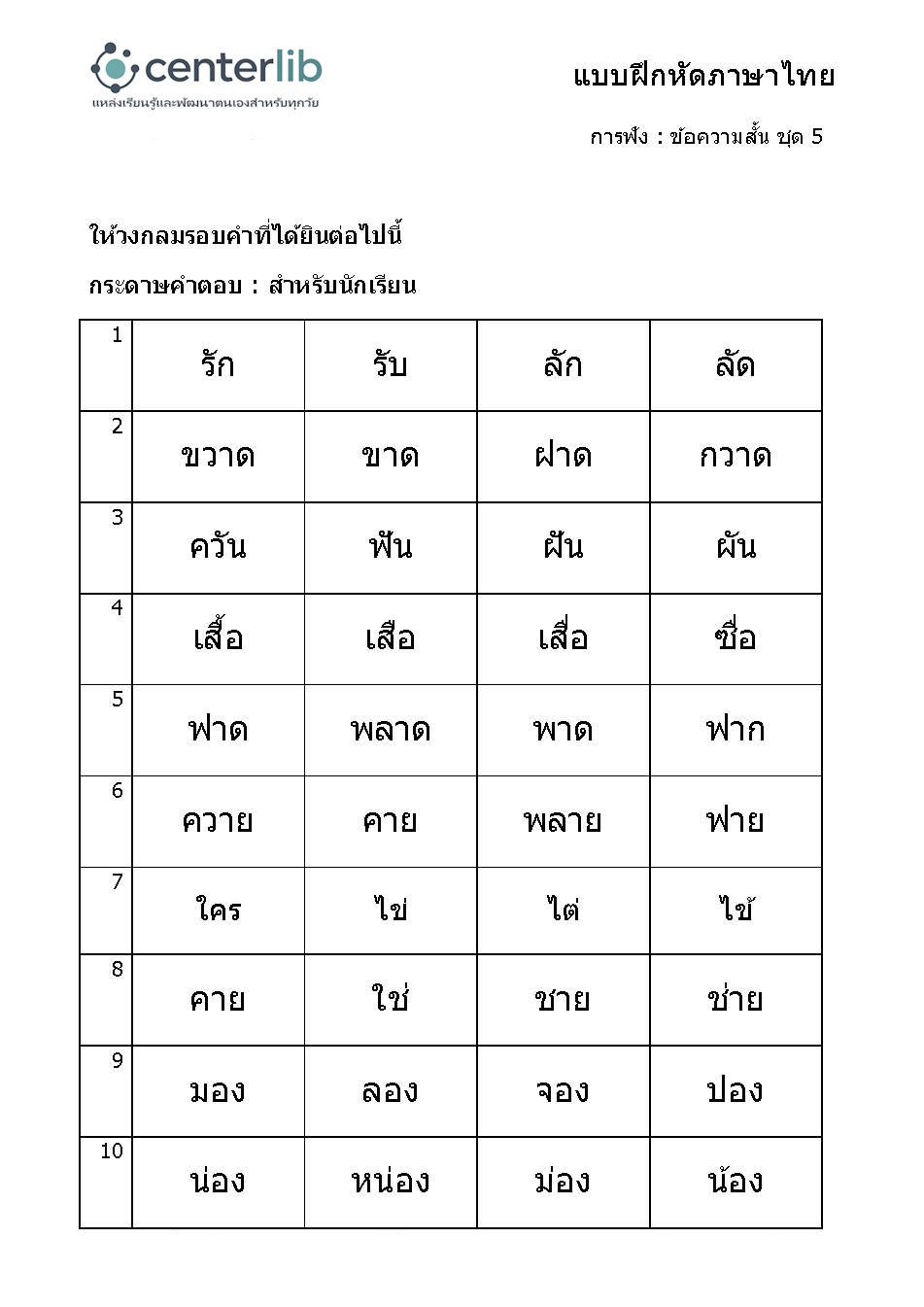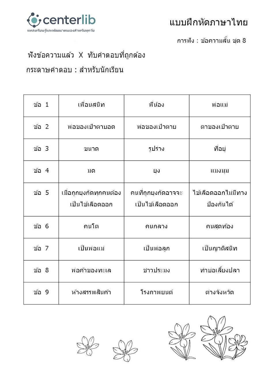 การฟังข้อความสั้น แล้วตอบคำถาม