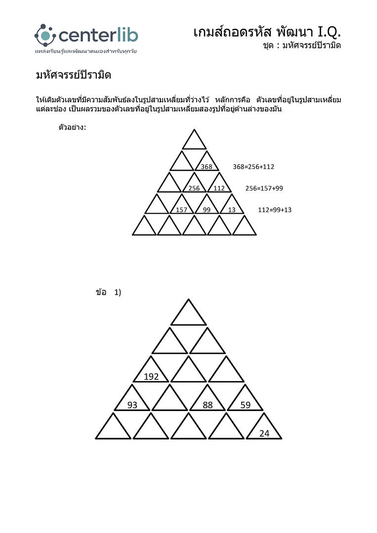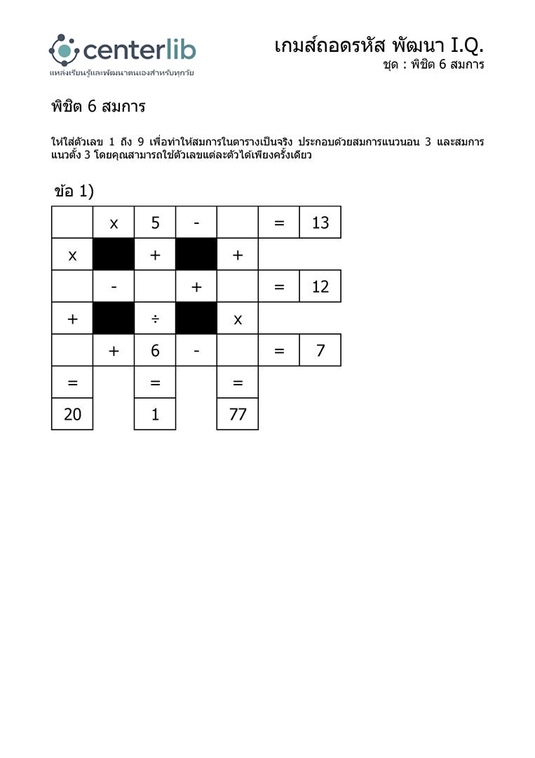 สนุกกับเกมถอดรหัส 7 เกม 7 แบบ; ถอดรหัส 10 ช่อง, พิชิต 6 สมการ, มหัศจรรย์ปิรามิด, ลายแทงขุมทรัพย์, อะไรบวกลบคูณหารกับอะไรเนี่ย, เรือรบประจัญบาน และ เดินทางด้วย 1-2-3-4