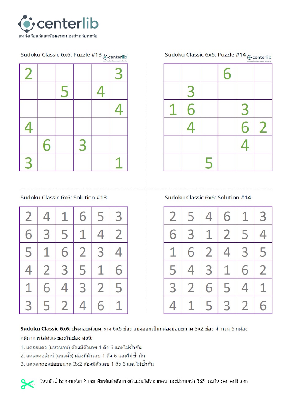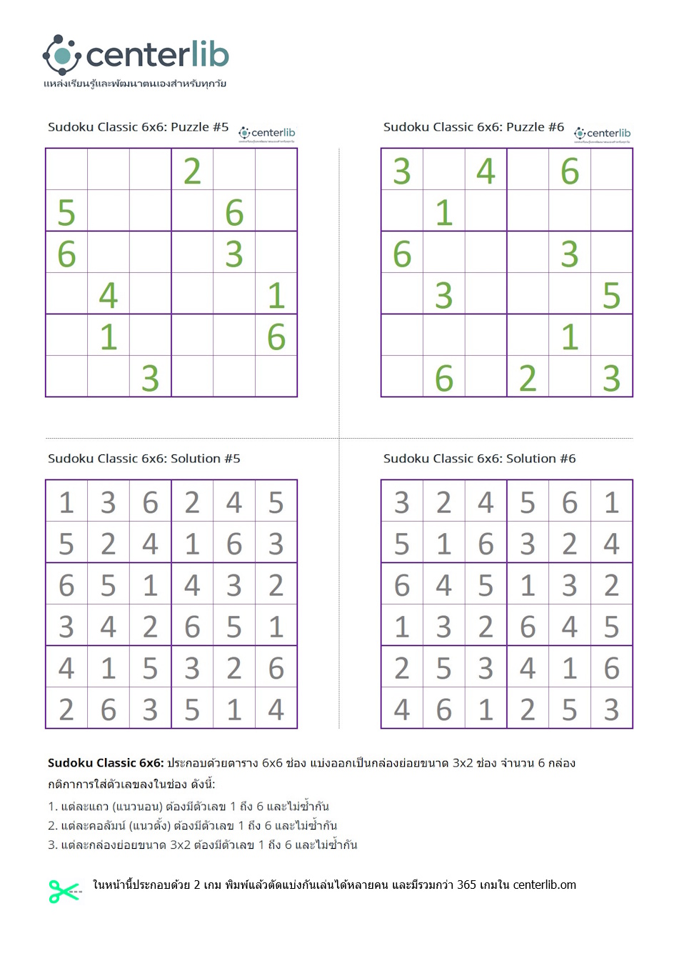 Sudoku 6x6 ตัวเลข พร้อมเฉลย