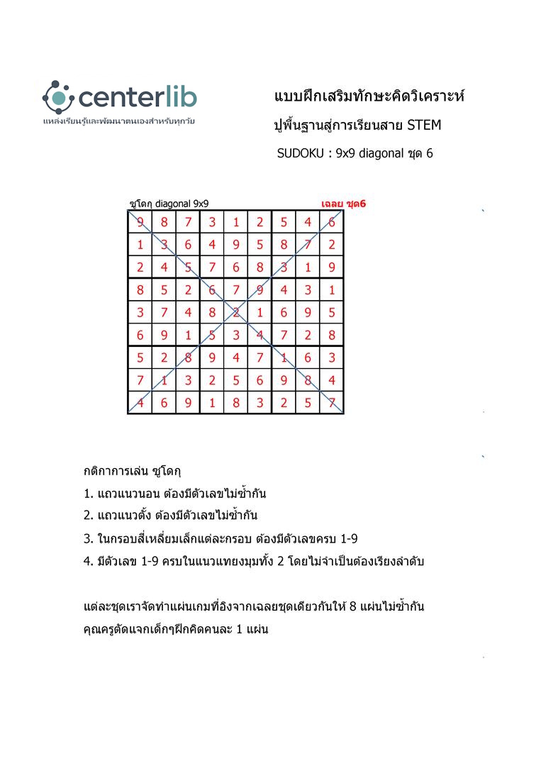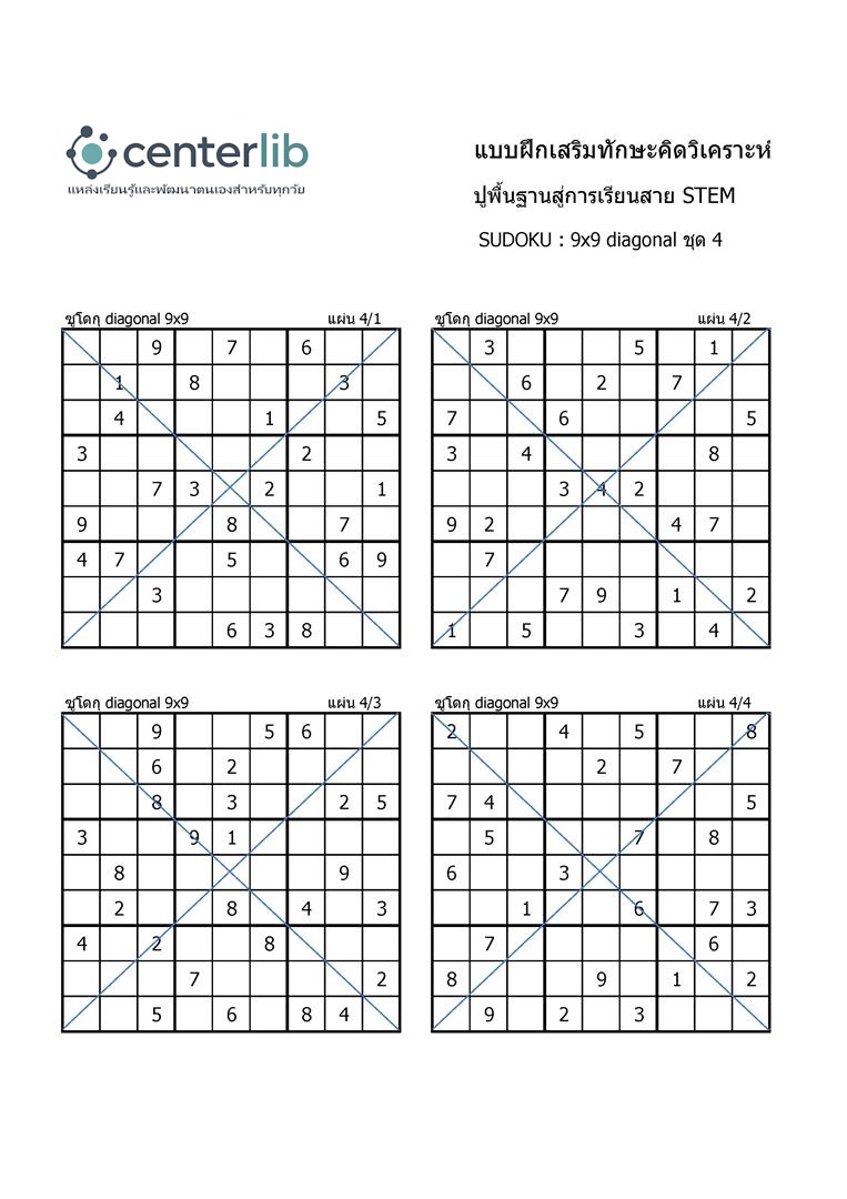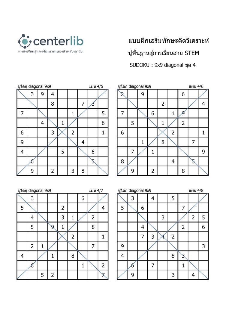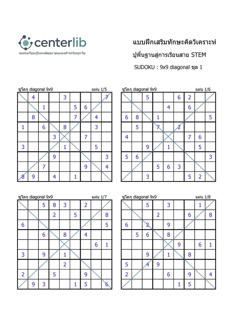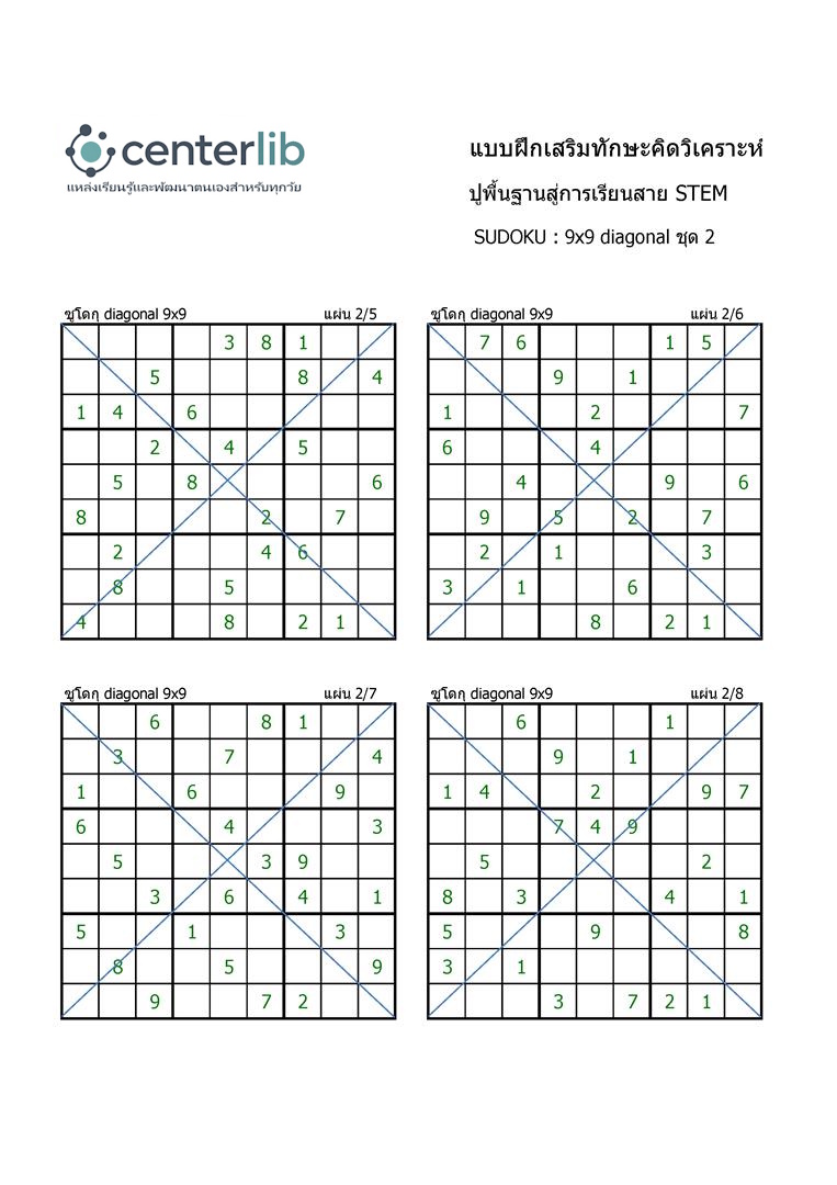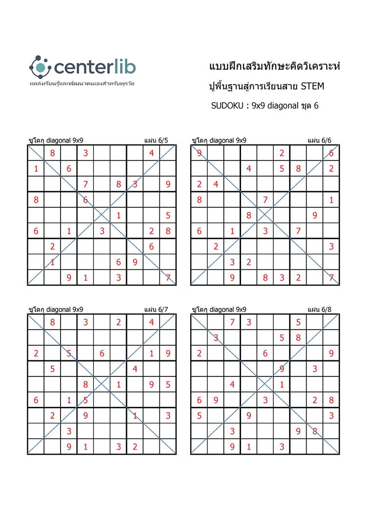 เกมซูโดกุ 6 ชุด แต่ละชุดมี 2 หน้า รวม 8 เกม