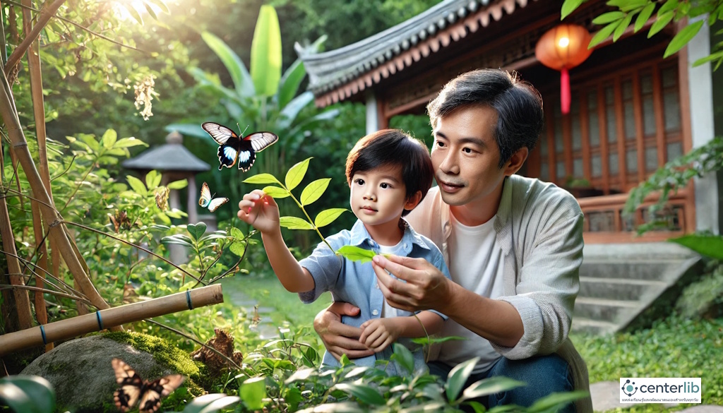 - ใช้เวลาในสวนหรือพาไปทะเล เพื่อให้ลูกได้สำรวจสัตว์ พืช และปรากฏการณ์ทางธรรมชาติ เช่น การดูผีเสื้อบิน หรือการเก็บก้อนหิน เพื่อฝึกการสังเกตและการเรียนรู้ผ่านธรรมชาติ