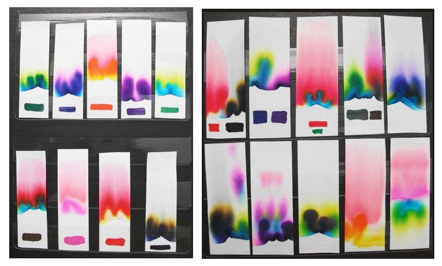 สีสังเคราะห์เกิดจากการผสมของแม่สี คือ แดง เหลือง น้ำเงิน ในอัตราส่วนไม่เท่ากัน ทำให้เกิดสีต่างๆมากมาย การแยกสีด้วยกระดาษกรองนี้ เราเรียกว่า "เปอเปอร์โครมาโทกราฟี" (Paper Chromatography) ซึ่งเป็นการแยกสารที่ผสมกันในปริมาณน้อยให้แยกออกมาเป็นแถบเส้นสีหรือแถบสี อาศัยสมบัติ 2 ประการ คือ