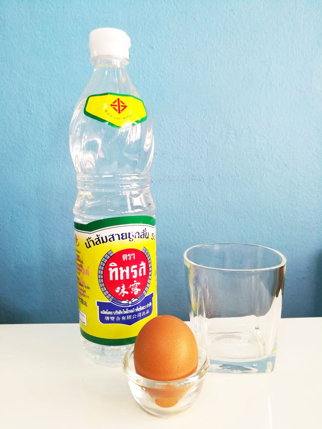 2. เทน้ำส้มสายชูลงไปให้ท่วมไข่