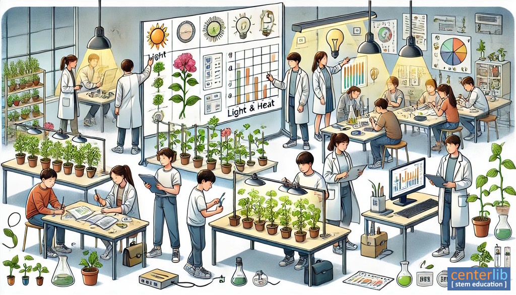 นักเรียนได้รับมอบหมายให้ศึกษาและทดลองเกี่ยวกับผลกระทบของแสงและความร้อนต่อการเจริญเติบโตของพืช นักเรียนจะต้องทำการวิจัย ทดลอง และสรุปผลเพื่อทำความเข้าใจว่าปัจจัยเหล่านี้มีผลต่อการเจริญเติบโตของพืชอย่างไร