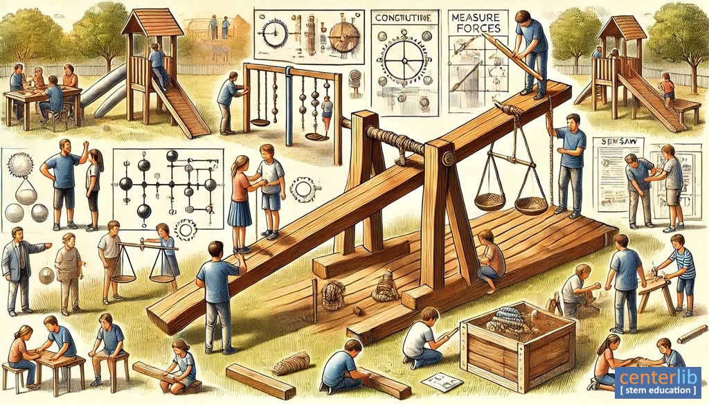 - การออกแบบเครื่องเล่นโยก: ออกแบบเครื่องเล่นโยกที่สามารถใช้งานได้โดยใช้ไม้และเชือก เช่น การใช้ไม้ยาวสองท่อนสำหรับตัวเครื่องเล่นและเชือกสำหรับยึด
