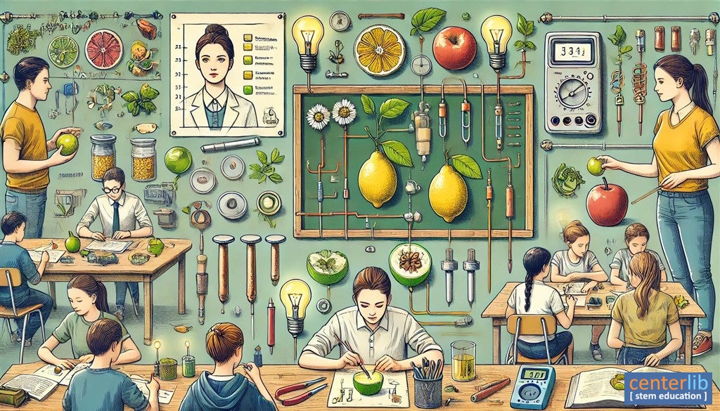 นักเรียนได้รับมอบหมายให้ทดลองสร้างพลังงานไฟฟ้าจากผลไม้ โดยใช้ผลไม้ต่างๆ เช่น มะนาว มันฝรั่ง หรือส้ม เพื่อสร้างพลังงานไฟฟ้าที่สามารถจุดหลอดไฟขนาดเล็กได้ นักเรียนจะต้องทำการวิจัย ออกแบบการทดลอง สร้างการทดลอง และทดสอบการสร้างพลังงานไฟฟ้าจากผลไม้