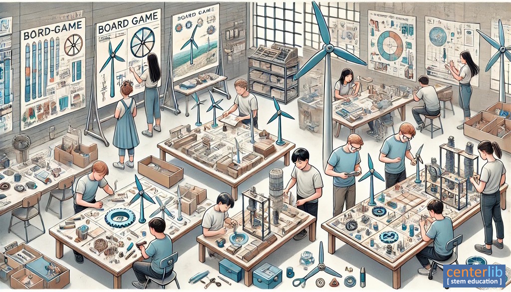 นักเรียนได้รับมอบหมายให้สร้างเกมกระดานที่ใช้พลังงานลมเป็นตัวขับเคลื่อนในการเล่นเกม นักเรียนจะต้องทำการวิจัย ออกแบบ สร้าง และทดสอบการทำงานของเกมกระดานนี้
