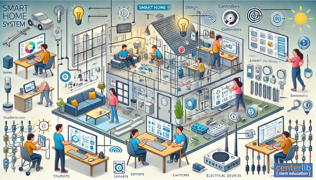 นักเรียนได้รับมอบหมายให้ออกแบบและสร้างระบบบ้านอัจฉริยะที่สามารถควบคุมอุปกรณ์ไฟฟ้าต่าง ๆ ผ่านแอปพลิเคชัน นักเรียนจะต้องทำการวิจัย ออกแบบระบบบ้านอัจฉริยะ สร้างโมเดลระบบ และทดสอบความสามารถในการควบคุมอุปกรณ์ไฟฟ้าของระบบ