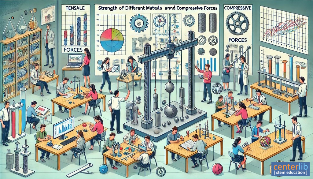 นักเรียนได้รับมอบหมายให้ศึกษาและทดลองเกี่ยวกับการทดสอบความแข็งแรงของวัสดุต่าง ๆ เมื่อได้รับแรงดึงและแรงกด นักเรียนจะต้องทำการวิจัย ทดลอง และสรุปผลเพื่อทำความเข้าใจว่าวัสดุแต่ละชนิดมีความแข็งแรงเพียงใดเมื่อได้รับแรงดึงและแรงกดต่าง ๆ
