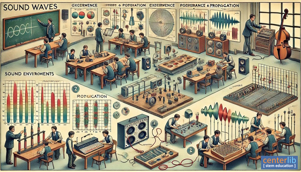 - การทดลองและสรุปผล: ทดลองการเกิดและการแพร่กระจายของคลื่นเสียงในสภาพแวดล้อมต่าง ๆ และสรุปผลการทดลอง เช่น การวัดความเร็วและความถี่ของคลื่นเสียงในวัสดุต่าง ๆ และการเปรียบเทียบผลลัพธ์